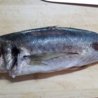 最後にキッチンバサミに持ち替えて、お腹と背中にあるヒレを切り取ります!