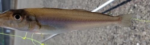 隣の釣り人に聞いたところ、この小さいイシモチで泳がせ釣りをするとヒラメが食ってくることがあるとのこと。