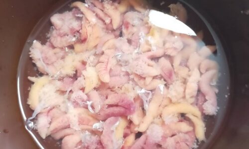 綺麗な塩水を浸かるぐらい入れ、新聞紙などをかけて冷蔵庫にいれるだけです。